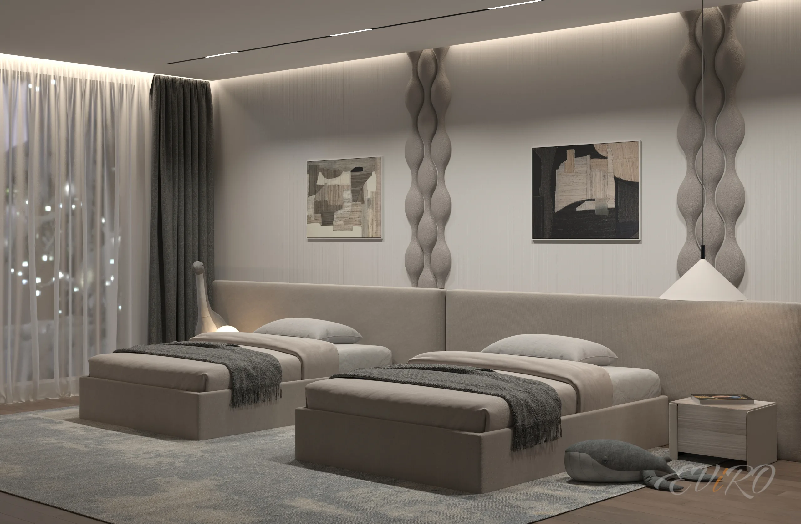 Трехмерная панель ЕВиРО «Роберта» ( гипсовые панели W217 PILLOW ) привлекает своей простотой и неприхотливостью в уходе, а также легким и не затратным монтажом. По желанию заказчика, плавно перетекающие «пузыри» 3D панели могут быть выполнены в любом цвете. Текстура данной модели позволяет создавать завораживающие орнаменты стен, а ее иррегулярные формы создают впечатление броуновского движения частиц и имитируют игру цвета и объема, что вносит определенную динамику в весь интерьер комнаты.
