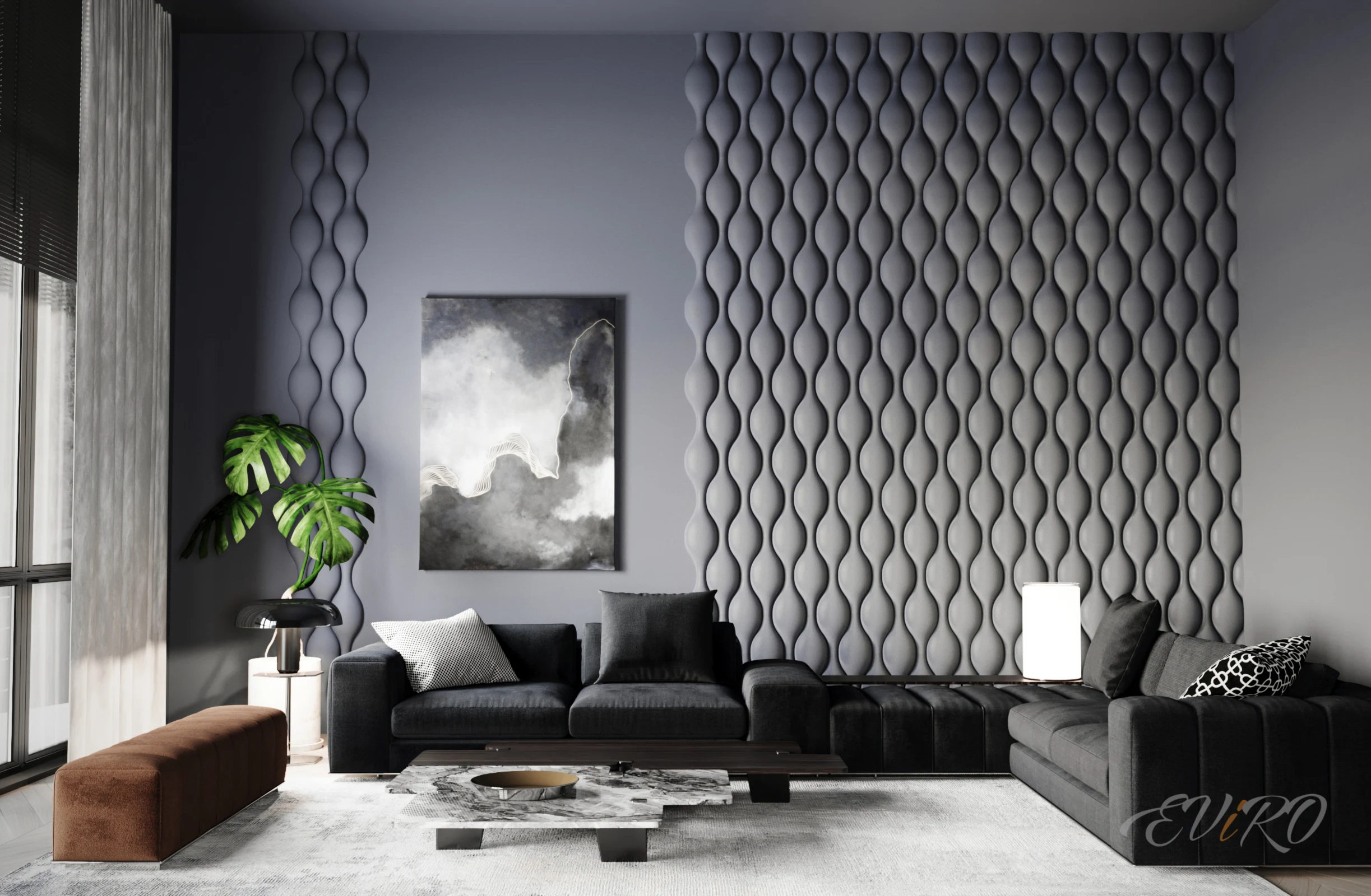 Вариант 2. Оформление зоны гостиной 3D панелями